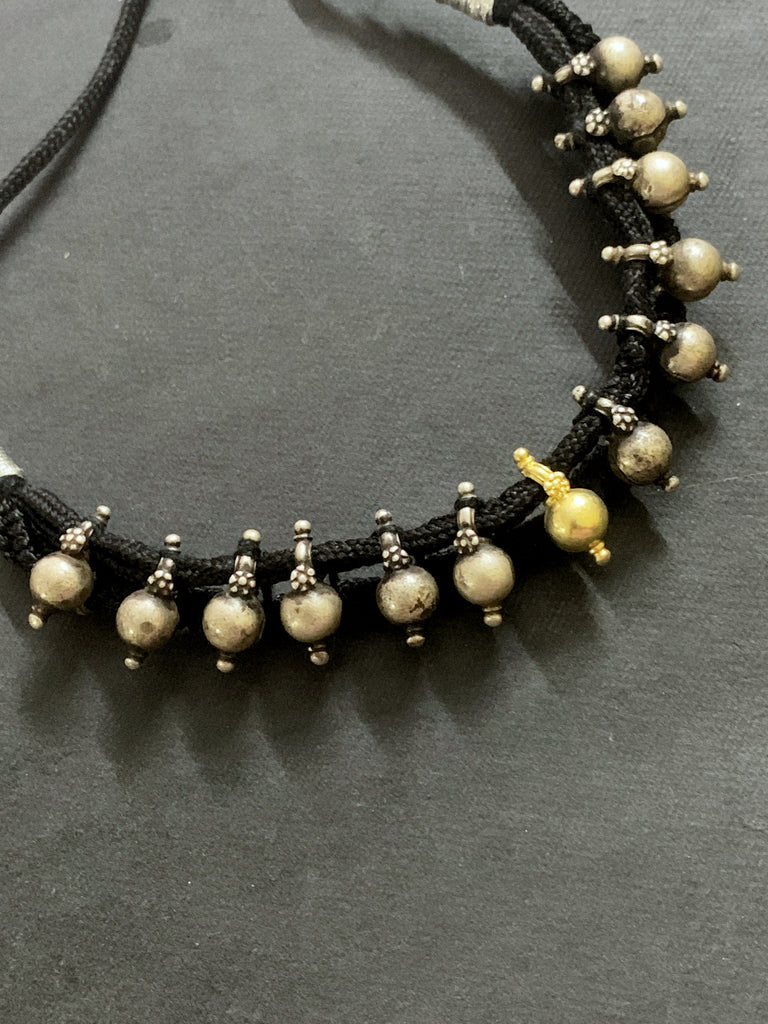 Vintage silver bells from Karnataka strung on black cord